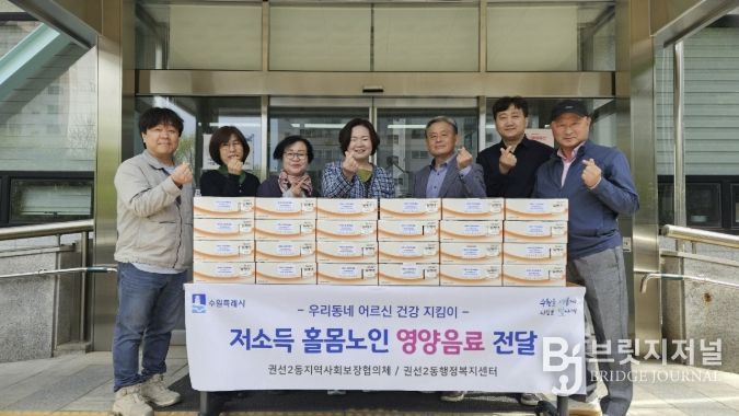 브릿지저널 김경미 기자 | 수원시 권선구 권선2동 지역사회보장협의체는 지난 23일, 저소득 홀몸노인 건강증진과 정서적 안정을 위한 “우리 동네 어르신 건강지킴이 영양음료 전달사업”을 진행했다.