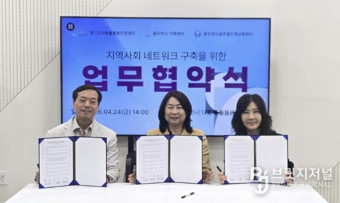 브릿지저널 김경미 기자 | 동두천시글로벌인재교육센터는 지난 24일 동두천시가족센터, 동두천시다함께돌봄센터1호점(경기도아동돌봄동두천센터)과 함께 지역사회 네트워크 구축을 위한 3자 간 업무협약(MOU)을 체결했다고 밝혔다.