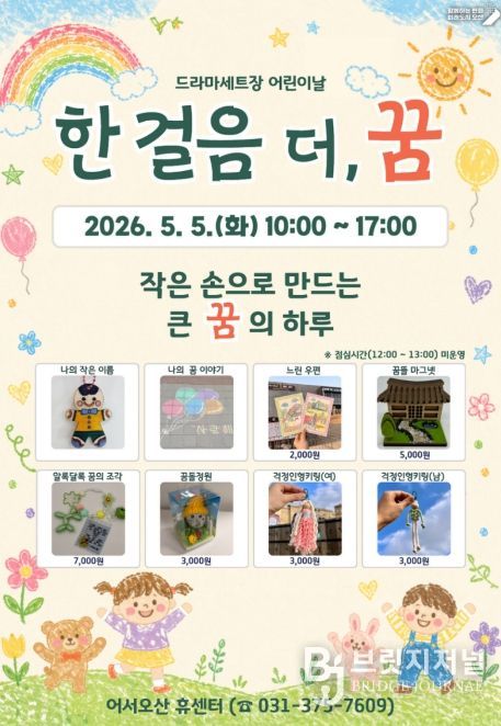 브릿지저널 김경미 기자 | 오산시는 오는 5월 5일 어린이날을 맞아 오산 드라마세트장 일원에서 어린이와 가족이 함께 즐길 수 있는 체험 프로그램 ‘한 걸음 더, 꿈’을 운영한다고 밝혔다.