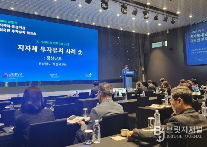 브릿지저널 김경미 기자 | 경상남도는 24일 서울 여의도 글래드호텔에서 산업통상부와 대한무역투자진흥공사(KOTRA)가 공동 개최한 ‘2026년 상반기 지자체·유관기관 외국인투자유치 워크숍’에 참석해 외국인 투자유치 협력체계를 강화하고 경남 투자환경을 소개했다고 밝혔다.