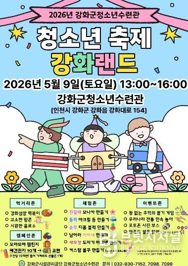 브릿지저널 김경미 기자 | 강화군청소년수련관이 오는 9일, 5월 ‘청소년의 달’을 맞아 청소년과 지역 주민이 함께 즐길 수 있는 청소년 축제 '강화랜드'를 개최한다.