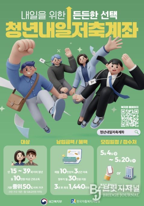 브릿지저널 김경미 기자 | 부천시는 일하는 저소득층 청년의 안정적인 사회 정착과 자산 형성을 지원하기 위해 ‘2026년 청년내일저축계좌’ 신규 가입자를 5월 4일부터 5월 20일까지 모집한다.