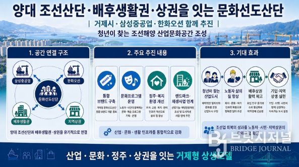 거제시와 양대 조선소는 정부의 공모지침과 정책 방향에 맞춰 산업단지를 단순한 생산공간을 넘어 청년이 찾고 시민이 체감할 수 있는 산업문화공간으로 전환하는 방안을 함께 구상하고 있다.