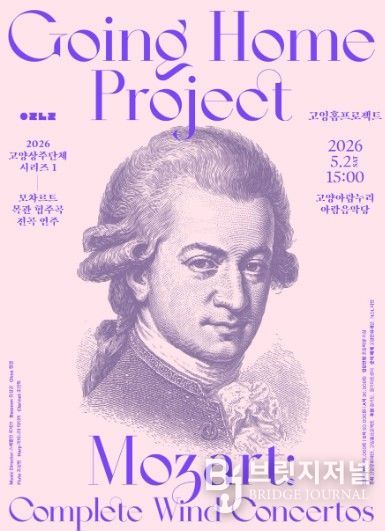 브릿지저널 김경미 기자 | 고양문화재단 상주단체 고잉홈프로젝트가 오는 5월 2일 고양아람누리 아람음악당에서 '모차르트 목관 협주곡 전곡'을 한 자리에서 선보인다. 이번 공연은 올해 고잉홈프로젝트의 고양문화재단 상주단체 2년 차를 맞아 고양문화재단과 함께 선보이는 기획 공연이며, 공연장과 예술단체가 함께 구축한 협력의 성과를 보여주는 무대다.