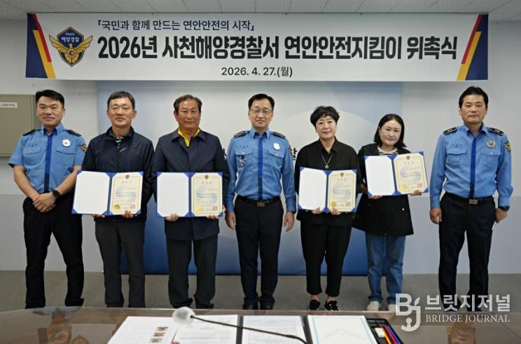 브릿지저널 김경미 기자 | 사천해양경찰서는 27일 연안사고 예방을 위해 선발된 ‘26년도 연안안전지킴이” 4명을 위촉했다고 밝혔다.