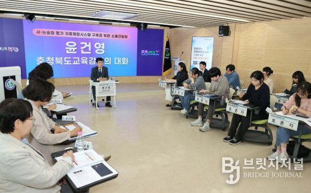 브릿지저널 김경미 기자 | 충청북도교육청은 27일, 충북온라인학교에서 '서・논술형 평가 인공지능(AI) 자동채점시스템' 도입을 위한 소통간담회를 열고 제도 도입 방향을 논의했다.