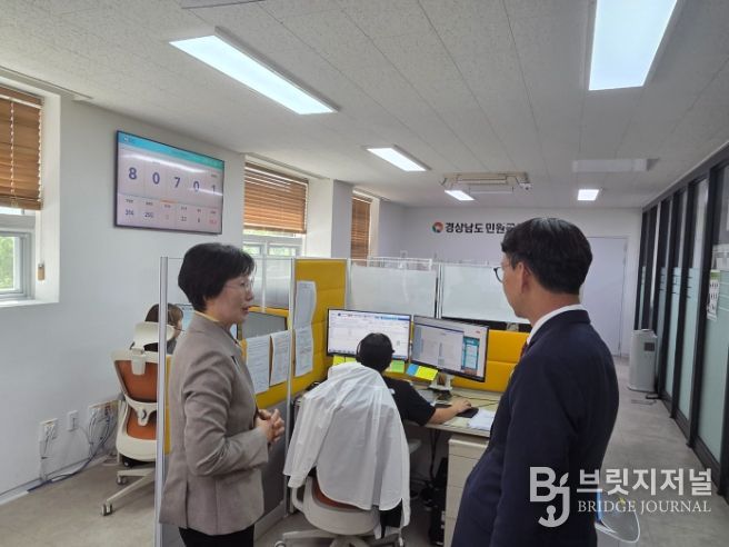 김명주 경남도 경제부지사는 24일 창원시 사림동에 위치한 경남도 민원콜센터를 방문해 운영상황을 점검했다. 경남도 민원콜센터에는 상담원 9명이 근무하고 있으며 일자리, 청년, 보건, 복지 등 797종의 상담 매뉴얼을 갖추고 1일 평균 217건의 민원콜을 처리하고 있다.