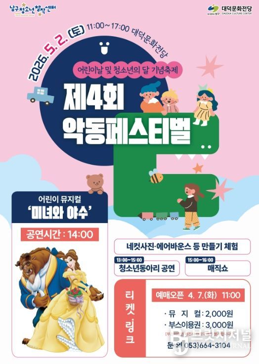 브릿지저널 김진석 기자 | 대구 남구청소년창작센터는 5월 어린이날 및 청소년의 달을 맞아 오는 5월 2일 토요일 대덕문화전당에서 '제4회 악동페스티벌'을 개최한다고 밝혔다.