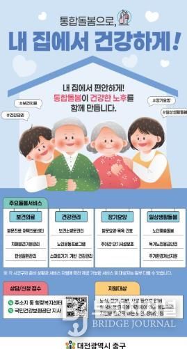 브릿지저널 정보영 기자 | 대전 중구는 초고령사회에 대응하기 위해 지난 3월 27일부터 본격 시행된‘의료·요양 통합돌봄’ 제도가 시행 한 달을 맞이하며, 지역사회에 점진적으로 자리를 잡아가고 있다고 밝혔다.