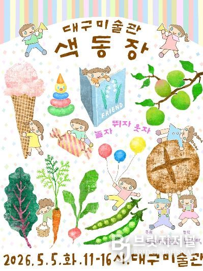 브릿지저널 김진석 기자 | 대구미술관은 가정의 달을 맞아 5월 5일 온 가족이 예술 안에서 즐겁게 소통할 수 있는 특별 이벤트 ‘놀자, 뛰자, 웃자-색동장’을 개최한다. 이날 미술관은 무료로 개방되며, 전시 관람부터 체험, 장터까지 다채로운 프로그램이 펼쳐진다.