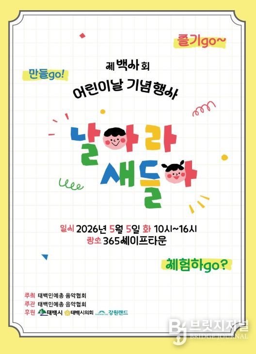 브릿지저널 윤나영 기자 | 태백시는 제104회 어린이날을 맞아 ‘날아라 새들아 페스티벌–만들GO·즐기GO·체험하GO’를 오는 5월 5일 365세이프타운에서 개최한다고 밝혔다.