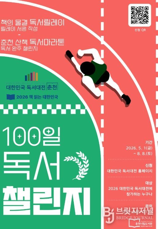 춘천시는 5월 1일부터 8월 8일까지 시민과 전국 독서 참여자를 대상으로 ‘100일 독서 챌린지’를 운영한다.