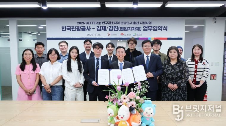 시는 지난 28일 한국관광공사 서울센터에서 '2026 BETTER里: 인구감소지역 관광인구 충전사업' 업무협약(MOU)을 체결했다. 이날 협약식에는 이현서 부시장과 한국관광공사 관광산업본부장을 비롯해 이번 실증사업을 이끌어갈 7개 관광 벤처기업 대표 등 30여 명이 참석했다. 이번 협약은 김제시의 관광 생활인구 증대 및 지역경제 활성화를 위한 확고한 민관 협력체계를 구축하기 위해 마련됐다.
