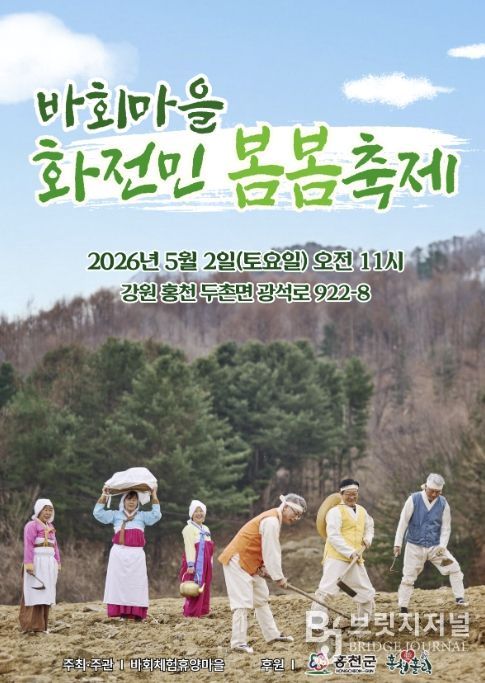 브릿지저널 윤나영 기자 | 홍천 산골 마을에서 화전민의 삶과 봄의 식문화를 한자리에서 체험할 수 있는 ‘화전민 봄봄 축제’가 열린다. 홍천군 두촌면 바회 마을은 오는 5월 2일 오전 11시부터 마을 일원에서 주민 참여형 축제를 개최한다.