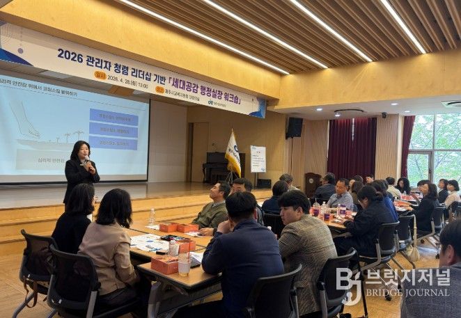 브릿지저널 정보영 기자 | 제주시교육지원청은 28일 오후 교육지원청 대회의실에서 관내 유·초·중학교 행정실장 74명을 대상으로 ‘세대공감 청렴 관리자 역량 강화 연수’를 운영했다.