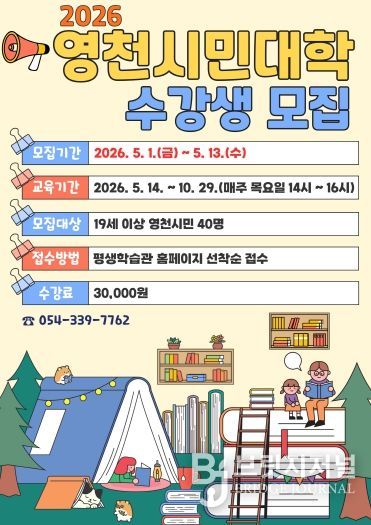 브릿지저널 정보영 기자 | 영천시 평생학습관은 5월 1일부터 13일까지 ‘2026년 영천시민대학’ 수강생 40명을 선착순 모집한다고 밝혔다.