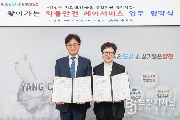 브릿지저널 김경미 기자 | 양천구는 29일 오전 구청 5층 회의실에서 양천구약사회와 ‘찾아가는 약물안전 케어서비스’ 추진을 위한 업무협약(MOU)을 체결했다고 밝혔다. 이번 협약은 약물관리가 필요한 취약계층을 대상으로 약사가 직접 가정을 방문해 맞춤형 서비스를 제공하는 양천구 통합돌봄 특화사업의 일환이다.