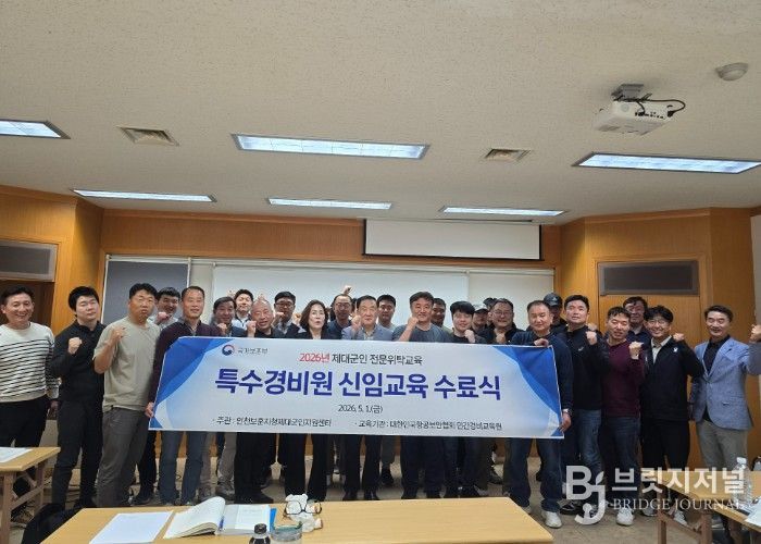 브릿지저널 김경미 기자 | 국가보훈부 인천보훈지청 제대군인지원센터는 4월 30일 16시 경기도 김포시 소재 사)한국항공보안협회 민간경비교육원에서 제대군인 전문위탁교육인“2026년 특수경비원 신임교육과정”수료식을 개최했다고 밝혔다.