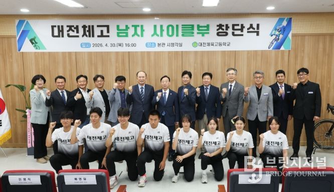 브릿지저널 정보영 기자 | 대전시교육청은 4월 30일 대전체육고등학교 시청각실에서 사이클 남자 고등부 창단식을 개최하고 본격적인 운영에 들어간다고 밝혔다. 이번 창단은 학생 선수의 체계적인 육성과 학교 체육 활성화를 위한 것으로, 지역 사이클 종목의 경쟁력 강화와 우수 인재 발굴을 위한 기반을 마련했다는 점에서 의미가 크다.