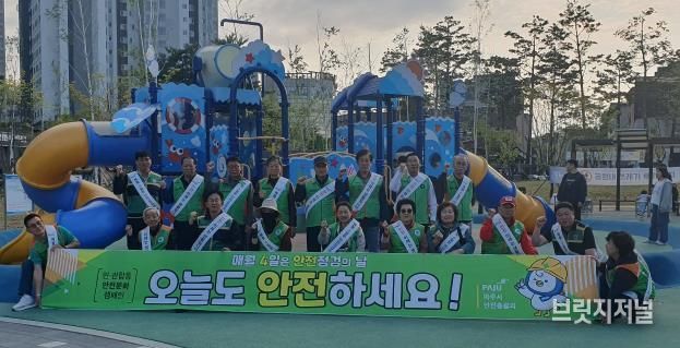 브릿지저널 김경미 기자 | 파주시는 지난 2일, 안전점검의 날(매달 4일)을 맞아 가람마을 인근 근린공원 어린이 놀이시설에서 안전수칙 준수 캠페인을 진행했다.