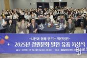 브릿지저널 김경미 기자 | 수원특례시는 18일 팔달문화센터 예당마루홀에서 ‘2025년 정원문화 발전 유공 시상식’을 열었다. 정원문화 발전에 기여한 시민과 단체 등에 수원시장상(47개)과 수원시의회 의장상(7개)을 수여했다. 시상은 표창장·감사패 수여, 시민정원 경연대회, 베스트 관리상, 올해의 정원인상 등 분야별로 진행됐다. 지난 10월 효원공원에서 열렸던 ‘2025년 수원시 시민정원 경연대회’ 수상팀들을 시상했다. 하나의 물방울이 만들어내는 무한한 생명의 파장을 표현한 ‘완뚝원정대’의 ‘리플(ripple) 가든’이 대상을 받았다. 어린 꽃이 꿈꾸는 산의 이미지를 담은 ‘진달래동산 꽃뫼’ 팀의 ‘어린 꽃이 꿈꾸는 뫼(산)’이 최우수상, 빛과 생명의 흐름을 표현한 ‘빛나게’ 팀의 ‘Flowing Light, Flowering Life(플로잉 라이트, 플라워링 라이프’가 우수상을 받았다. 이재준 수원시장은 “도심 속 열린 정원은 시민에게 휴식처가 되고, 기후 위기 대응에는 힘이 된다”며 “정원을 가꾼 수상자 노력에 감사하며 시민 일상에 초록이 늘도록 지원을 이어가겠다”고 말했다.