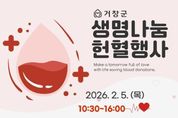브릿지저널 김경미 기자 | 거창군은 동절기 한파와 학생 방학 기간이 겹치며 전국적으로 혈액 수급에 어려움이 지속되고 있는 가운데, 헌혈 참여를 독려하기 위해 ‘사랑의 헌혈 행사’를 실시한다고 28일 밝혔다. 이번 행사는 오는 2월 5일 오전 10시 30분부터 거창군청 앞 로터리에서 열리며, 대한적십자사 경남혈액원 헌혈버스 2대가 현장을 방문할 예정이다. 헌혈은 만 16세 이상 만 69세 이하(남성 50kg, 여성 45kg 이상)의 건강한 군민이라면 누구나 참여할 수 있다. 다만 만 65세 이상은 60~64세 사이 헌혈 경험이 있는 경우에만 가능하다. 헌혈 참여시에는 신분증을 지참해야 하며, 헌혈 후에는 소정의 기념품과 헌혈증서가 제공된다. 2026년 헌혈 일정은 거창군 보건소 누리집을 통해 확인 할 수 있으며, 군은 더 많은 군민이 헌혈에 동참할 수 있도록 지속적인 안내와 홍보를 이어갈 예정이다. 거창군 관계자는 “추운 날씨 속에서도 작은 용기가 누군가의 생명을 살릴 수 있다”며 “군민 여러분의 따듯한 관심과 헌혈 참여를 부탁드린다”고 말했다. 한편, 거창군