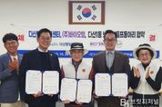 브릿지저널 김경미 기자 | 남양주시는 28일 오후 4시 다산행정복지센터 소회의실에서 (주)바이오템, 다산1동 노인회 골프동아리와 어르신 복지 증진과 지역사회 나눔문화 확산을 위한 단체복 전달 협약을 체결했다. 이번 협약은 지역 기업의 사회공헌 활동과 주민의 자발적 참여를 연계해 어르신의 건강한 여가생활을 지원하고, 나눔문화 정착을 도모하기 위해 마련됐다. 다산행정복지센터는 협약 전 과정을 주관하며 행정적 지원을 맡았다. 협약식에는 △이기복 다산행정복지센터장 △이영호 바이오템 대표 △이대희 다산1동 노인회 골프동아리 회장을 비롯한 관계자들이 참석했다. 세 기관은 이번 협약을 통해 어르신 동아리 활동 활성화와 지역사회 공동체 문화 조성을 위해 상호 협력하기로 했다. 이날 바이오템은 노인회 동아리 회원을 위해 모자와 ‘배러투데이(Better Today)’가 디자인한 단체복을 전달하며 따뜻한 나눔을 실천했다. 바이오템은 친환경 임플란트 전문기업으로, 이영호 대표는 남양주다산로타리클럽 회장으로서 지난 8월 다산노인복지관에 100만 원 상당의 삼계탕을 기부하는 등 꾸준한 사회공헌을 이어오고 있다. 한편, 다산