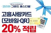 브릿지저널 김경미 기자 | 고흥군은 전국 대규모 할인 축제인 ‘코리아 그랜드 페스티벌’을 기념해 10월 29일부터 11월 9일까지 12일간 모바일 고흥사랑상품권 20% 적립 이벤트를 진행한다고 밝혔다. ‘코리아 그랜드 페스티벌’은 내수 회복을 위해 정부 10개 부처 합동 주관으로 유통업계와 소상공인 등 3만여 업체가 참여하는 국가 단위 대규모 소비축제로, 10월 29일부터 11월 9일까지 12일간 진행된다. 고흥군은 전국적으로 진행되는 코리아 그랜드 페스티벌에 발맞춰 지역 소비 및 상권 활성화를 위해 모바일 고흥사랑상품권 적립률을 5% 상향해 총 20% 특별 적립 이벤트를 마련했다. 행사 기간 모바일 고흥사랑상품권을 결제하면 결제금액의 20%를 적립할 수 있으며, 적립된 캐쉬백은 가맹점에서 일반 상품권과 동일하게 사용할 수 있다. 모바일 고흥사랑상품권은 ‘지역상품권 chak’ 앱을 통해 충전하며, 고흥사랑카드 또는 chak 어플 QR코드를 이용해 가맹점에서 사용할 수 있다. 군은 이번 20% 특별 적립 이벤트가 11월 6일부터 9일까지 4일간 진행되는 제5회 고흥유자축제의 성공에도 큰