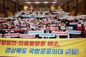 브릿지저널 정보영 기자 | 지난 12월 17일 국회의원회관 대회의실에서 김형동 국회의원과 임미애 국회의원이 공동 주최한 ‘경상북도 국립․공공의대 설립 국회토론회’가 열렸다. 이날 토론회에는 이철우 경상북도지사, 권기창 안동시장 등 지자체 주요 인사와 경상북도 국립의과대학 설립 범시도민단을 포함한 시민단체 관계자 등 약 450명이 참석해 경북 지역 의료 여건과 국립의과대학 설립 필요성에 대한 논의를 이어갔다. 또한 권오을 국가보훈부 장관, 김도읍 국민의힘 정책위원회 의장, 김영호 더불어민주당 교육위원회 위원장 등 여야 의원 30여 명이 참석해 경북 국립의대 설립에 대한 관심을 보였다. 1부 개회식에서는 참석자들이 ‘경북 도민의 염원, 국립․공공의대 설립’이라는 문구가 적힌 손팻말을 들고 지역 의료 현안에 대한 공감의 뜻을 함께 표현했다. 2부에서는 유천 국립목포대 의과대학설립추진단 부단장이 ‘전남 국립의대 설립 현황 및 계획’을, 정태주 국립경국대학교 총장이 ‘경북도 국립․공공의대 설립의 필요성과 추진 방향’을 주제로 발표했다. 이어진 토론에서는 정태주 총장이 좌장을 맡고 김윤 국회의원,