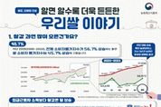 브릿지저널 김경미 기자 | 지난 17일 국가데이터처에서 발표한 4.15일자 산지쌀값은 57,447원/20kg으로 지난 3월 15일자부터 4순기 연속 하락세를 유지했다. 소비자쌀값은 지난 11월 이후 62~63천 원/20kg으로 큰 변동성 없이 유지하고 있으며, 지난 4월 22일 가격은 62,455원/20kg으로 전년대비 13.5%, 평년 대비 17.5% 높은 수준이다. 정부는 쌀 수급 안정을 위해 지난 2월 27일 정부양곡 15만 톤 이내 공급계획을 수립했고, 1차로 정부양곡 10만 톤을 지난 3월 13일부터 순차적으로 공급했다. 이후 산지쌀값은 하락세로 전환됐으며, 정부는 수급 상황을 면밀하게 살피기 위해 정부양곡 공급 현장점검을 추진 중이며, 산지유통업체와 소비지유통업계와의 소통을 강화하고 있다. 현장 대다수는 정부양곡 공급, 통상적으로 쌀 소비가 감소하는 여름철 수요 여건 등을 감안할 때 가격 상승 요인은 제한적이기 때문에 향후 산지쌀값은 약보합세를 보일 것으로 전망하고 있는 상황이다. 앞으로 쌀 시장을 면밀하게 모니터링하면서, 수급이 불안해질 경우 추가 5만 톤 공급 또한 신속하게 검토할 계획이다. 정부는 소비자쌀