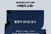 브릿지저널 김경미 기자 | 성남문화재단은 콘서트 오페라 ‘바람의 노래’ 무대를 빛낼 주역 성악가를 선발하는 오디션을 개최한다. 콘서트 오페라 ‘바람의 노래’는 오페라를 더 친근하게 즐길 수 있도록 기획된 ‘2026 오페라 정원’ 시리즈의 작품 중 하나로, 지난해 재단이 제작한 창작 오페라를 콘서트 오페라 형식으로 재구성해 선보이는 공연이다. ‘바람의 노래’는 성남을 대표하는 작곡가 박태현 선생의 동요들을 모티프로, 한국전쟁 등 격동의 현대사 속에서도 동심을 지켜낸 동요의 힘을 예술적으로 풀어낸 작품이다. 재단은 지역 예술인 육성과 무대 참여 기회 확대를 위해 작품의 중심 배역인 테너 ‘달’ 역과 소프라노 ‘바람’ 역을 성남시에 거주하는 성악가를 대상으로 오디션을 통해 선발한다. 지원 자격은 4년제 음악대학 성악과 졸업 이상 또는 동등한 자격을 갖춘 자로, 공고일(4월 27일) 기준 성남시에 거주하고 있는 성악가를 대상으로 한다. 접수는 5월 11일부터 13일 오후 5시까지 온라인으로 진행된다. 오디션은 5월 19일 오후 2시부터 성남아트센터 콘서트홀에서 피아노 반주에 맞춘 지정곡 가창으로 진행되며,