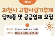 브릿지저널 김경미 기자 | 과천시는 고향사랑기부제 활성화를 위해 답례품 공급업체를 공개 모집한다고 밝혔다. 시는 최근 열린 답례품선정위원회를 통해 답례품 분야를 확대하고 품목 제한을 없애기로 했다. 이에 따라 관내 사업장을 둔 업체를 대상으로 공개 모집을 진행한다. 신청 대상은 답례품으로 제공할 수 있는 물품을 생산·제조하고 배송이 가능한 업체다. 참여를 희망하는 업체는 과천시 누리집 ‘과천소식'고시‧공고’에서 신청 서식을 작성한 뒤, 5월 13일부터 15일까지 전자우편 또는 과천시청 방문을 통해 서류를 제출하면 된다. 시는 접수된 업체를 대상으로 답례품선정위원회 심의를 거쳐 공급업체와 답례품을 최종 선정할 계획이다. 선정된 답례품은 오는 6월부터 ‘고향사랑e음’을 통해 기부자들에게 제공될 예정이다. 이번 모집은 기부자에게는 선택의 폭을 한층 넓히고, 참여 업체에는 전국 단위 홍보와 판로 확대의 기회를 제공하는 계기가 될 것으로 기대된다. 시 관계자는 “과천시만의 특색을 살린 경쟁력 있는 답례품을 적극 발굴하여 고향사랑기부제의 취지를 살리고, 지역경제 활성화로 이어질 수 있게 하겠다”라