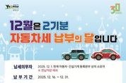 브릿지저널 김경미 기자 | 연수구는 자동차 등 약 12만 4천 대를 대상으로 2025년 12월 정기분 자동차세 184억 원을 부과했다. 이번에 부과된 자동차세는 12월 1일 현재 연수구에 등록된 자동차, 125cc 초과 이륜차, 건설기계의 등록원부상 소유자에게 부과되며, 연간 자동차세를 한꺼번에 미리 납부(1·3·6·9월)한 차량은 과세 대상에서 제외된다. 납부 기한은 이달 31일까지이며, 전국 금융기관의 현금자동입출금기, 금융결제원, 위택스, 자동응답시스템, 앱 등을 통해 계좌이체나 신용카드로 낼 수 있다. 자동차세 관련 자세한 사항은 연수구 세무과 자동차세팀으로 문의하면 된다. 연수구 관계자는 “납부 기한이 지나면 3%의 납부지연가산세가 부과되고, 번호판 영치 등 불이익이 발생할 수 있는 만큼 기한 내 납부해 주시기를 바란다.”라고 당부했다.