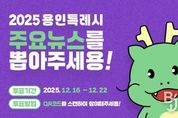 브릿지저널 김경미 기자 | 용인특례시는 ‘시민과 함께 뽑은 2025년 용인특례시 주요 뉴스’ 선정을 위해 22일까지 온라인 설문조사를 한다고 17일 밝혔다. 시는 한 해 동안 시가 추진한 정책이나 사업 중 언론의 주목을 받고, 시민의 체감도가 높았던 사업을 주요 뉴스로 선정해 공개하고 있다. 시민, 직원, 출입 기자를 대상으로 온라인 투표를 진행하며, 투표 결과를 합산해 많은 표를 얻은 순서대로 주요 뉴스를 선정한다. 투표에 참여하면 시민의 생활과 밀접한 사업, 시의 주요 정책, 시정 현안 등을 기준으로 사전 선정한 30개 주요 뉴스 중 최대 5개 뉴스를 선택할 수 있다. 투표는 네이버 폼으로 진행한다. 용인특례시 홈페이지나 공식 인스타그램, 블로그 등 사회관계망서비스(SNS)에 게시된 큐알(QR)코드를 통해 접속할 수 있다. 결과는 오는 23일 시 홈페이지와 SNS를 통해 발표한다. 시 관계자는 “2025년은 용인특례시가 문화·스포츠·도시개발 등 다양한 분야에서 한 단계 이상 성장한 한 해였다”며 “한 해를 마무리하며 모두가 용인의 성장 여정을 함께 되짚어보고, 더 나은 미래를 향한