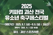 브릿지저널 김경미 기자 | 충북 괴산군은 오는 11월 7일부터 9일까지 3일간 괴산스포츠타운과 청소년수련원 축구장에서 ‘2025 자연울림괴산 전국 유소년축구대회’를 개최한다고 30일 밝혔다. 이번 대회는 (사)한국유소년축구협회와 괴산군체육회가 공동 주최하고, (사)한국유소년축구협회 및 괴산군축구협회가 주관한다. 전국 각지에서 총 70개 팀, 선수 및 임원, 학부모 등 2,000여 명이 참가할 예정이다. 특히 7일 오후 2시에는 괴산스포츠타운 준공식과 함께 개막식이 열리며, 개막 이후 첫 경기로는 괴산군 대표팀인 강호FC가 출전해 대회의 시작을 알린다. 경기는 학년별로 나뉘어 진행된다. 초등 1~3학년부는 6인제, 4~6학년부는 8인제 방식으로 운영되며, 경기의 공정성과 안전성을 확보하기 위해 전문 심판진과 운영 요원이 배치된다. 대회 우승팀에게는 필리핀 뉴클락시티에서 열리는 국제대회 및 동계 해외전지훈련 무상 참가 자격이 주어지며, 이를 통해 선수들이 국제무대 경험을 쌓고 기량을 향상시킬 수 있을 것으로 기대된다. 또한, 이번 대회는 단순한 스포츠 행사를 넘어 지역경제 활성