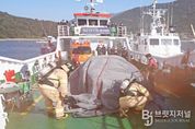 브릿지저널 김경미 기자 | 남해지방해양경찰청은 29일 오전 경남 하동 노량항 인근 해상에서 차도선 내 전기차 화재 사고 대비, 관계기관 합동 수난대비기본훈련을 실시했다고 밝혔다. 최근 전기차ㆍ리튬이온배터리 등 2차 전지 기인 화재 위험성에 대한 사회적 관심이 높은 가운데, 남해청 관내 전기차를 운송하는 차도선 및 여객선 29척에 대한 사전 예방 활동과 사고 발생 시 현장 대응 역량 강화 또한 요구되고 있는 실정이다. 이에 남해지방해양경찰청은 운항 중인 차도선 내 전기차에서 화재가 발생한 상황을 가정하여 승객 탈출 및 인명구조 활동은 물론, 하부관창과 질식소화덮개 등 전용 장비를 활용한 초기 화재 진압, 긴급 피항 이후 소방과 연계된 완전 진화 활동까지 실전 중심의 현장 기동훈련을 진행했다. 이날 훈련에는 하동군청, 남해군청, 해양환경관리공단, 소방 등 7개 유관기관 및 해양재난구조대(드론수색대)가 함께 했으며, 총 8척의 함선과 드론 1기, 차량 2대가 동원됐다. 뿐만 아니라, 이날 훈련에 참가한 유관기관 및 해양재난구조대 등을 대상으로 실제 전기차 배터리 셀에 화재 상황을 연출하고 전용 장비를