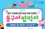 브릿지저널 김진석 기자 | 대구 동구청은 지정음식점 홍보와 외식산업 활성화를 위해 20일부터 11월 16일까지 4주간 ‘동구 지정음식점 홍보 SNS 인증샷 & 리뷰 이벤트’를 실시한다. 전 국민 누구나 참여 할 수 있는 이번 이벤트는 대구 동구맛집 홈페이지에서 이벤트 참여 식당을 확인 후 이용 한 뒤 리뷰를 등록하고 인증하면 된다. 리뷰 등록은 네이버 MY 플레이스 영수증 리뷰 또는 인스타그램에 음식사진과 함께 해시태그 3종(#업소명#대구동구지정음식점#동구맛집맛있어) 게시 2가지 방법으로 할 수 있으며, 이벤트 참여는 대구 동구맛집 홈페이지에서 해당 리뷰를 인증하면 된다. 참여자 중 추첨을 통해 매주 화요일 25명씩 총 100명의 당첨자를 선정해 ‘동구 맛집 명성을 담은 밀키트’ 10선 중 1개와 모바일 커피쿠폰(스타벅스)을 경품으로 증정한다. 윤석준 동구청장은 “이번 이벤트를 통해 동구 관내 다양한 지정음식점을 홍보하여 많은 분들이 동구의 맛을 즐기고 이를 통해 우리 지역 먹거리의 우수성을 널리 알리고 지역경제 활성화에 도움이 되길 바란다”고 말했다.