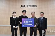 브릿지저널 윤나영 기자 | 최근 강원학사를 졸업한 윤재영 숙우(25세)가 후배 인재 육성을 위한 기부금 200만 원을 강원인재원에 기탁했다. 기부자인 윤재영 숙우는 2018년 강원학사에 입사하여 재사생 대표인 자치회장은 물론 숭실대학교 총학생회장을 역임했으며, 금년 2월 학사졸업과 함께 글로벌 핀테크 기업 '비바리퍼블리카 토스'에 입사했다. 윤재영 숙우는 “강원학사는 대학시절의 든든한 울타리이자, 선후배들을 만난 고마운 공간이었다”며, “이번 기부는 그 감사한 마음을 후배들에게 나누고자 한 것으로, 사회생활을 시작하며 받은 첫 월급부터 조금씩 모아온 정성을 보태게 됐다”고 밝혔다. 이어 “저 또한 숙우회 선배님들의 발자취를 이어 지역과 함께 성장하는 자랑스러운 강원인재가 되겠다”고 포부를 전했다. 김학철 원장은 “이번 기부는 명예의 전당에 이름을 올린 최연소 기부자이자, 사회에 첫발을 내딛은 사회초년생의 기부라는 점에서 의미가 크다”며, “지난 3월 조윤영 숙우의 기부를 시작으로 청년 숙우들의 후원이 꾸준히 이어지고 있으며, 이러한 지역과 후배를 향한 보은의 마음이 강원학사의 새로운 100년을 이끌어 갈 성장동