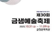 브릿지저널 윤나영 기자 | 부산시 금정구가 주최하고 금정구 문화예술인협의회(회장 도태근)가 주관하는 10월 31일부터 11월 9일까지 금정문화회관 은빛샘홀, 금샘미술관 전시실, 야외광장에서 ‘제30회 금샘예술축제’를 개최한다. 금샘예술축제는 국악·무용·문인·미술·사진·서예·연극·연예인·음악 등 9개 협회로 이루어진 금정구 문화예술인협의회에서 주관하는 지역대표 문화예술축제로, 30년째 매년 가을, 금정구 예술인들의 수준 높은 공연과 전시로 금정구 문화예술의 품격을 높여온 순수 종합예술축제다. 10월 31일 금정문화회관 은빛샘홀에서 개막 공연인 연극협회의 ‘늙은 자전거’를 시작으로, 11월 1일 음악협회의 ‘금샘열린음악회’, 11월2일 연예인협회의 ‘금정구민 현장노래방’이 진행된다. 아울러, 10월 31일부터 11월 9일까지 금샘미술관 전시실과 야외광장에서 서예협회의 ‘금정구서예인협회전’, 사진협회의 ‘금샘사진전’, 문인협회의‘깃발시화전 '파란 하늘 아래 시어가 펄럭이다'’이 진행된다. 올해 예술제에 참여하지 않은 국악협회, 무용협회와 미술협회는 내년에 더욱 풍성하게 준비하여 참여할 예정이다. &nbs