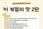 브릿지저널 윤나영 기자 | 원주시 동부복합생활지원센터는 오는 11월 3일부터 ‘이 계절의 맛 2탄’ 건강 요리 교실 프로그램 참여자를 모집한다. 이번 프로그램은 제철 식재료를 활용해 면역력과 활력을 높이는 건강 요리 실습을 통해 지역 주민들의 건강하고 균형 잡힌 식습관 형성을 돕는다. 교육은 11월 12일부터 12월 3일까지 매주 수요일마다 총 4회에 걸쳐 영양교육 및 요리 실습이 열린다. 프로그램은 오전 10시 30분부터 11시 30분까지 한 시간 동안 진행된다. 모집 인원은 20명이며, 11월 3일 오전 9시부터 11월 7일(금)까지 선착순 모집한다.