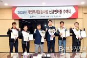 브릿지저널 윤나영 기자 | 원주시는 2025년 개인택시운송사업 신규 면허 대상자 4명을 확정· 발표하고, 이달 27일 시청 7층 회의실에서 개인택시 운송사업 신규 면허증 수여식을 개최했다. 시는 지난 8월 18일 개인택시운송사업 신규 면허 모집 공고를 통해 13명을 접수하고, 10월 23일 확정 공고를 통해 4명을 신규 면허 대상자로 발표했다. 원강수 원주시장은 “20년이 넘는 오랜 기다림 끝에 신규 면허를 받게 된 모든 분께 존경과 축하의 말씀을 전한다”라며, “앞으로도 시민들에게 안전하고 친절