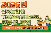 브릿지저널 정보영 기자 | 천안시농업기술센터는 오는 25일까지 ‘상반기 신규농업인 기초영농기술교육’ 참여자를 모집한다고 13일 밝혔다. 교육은 천안시로 이주한 지 5년 이내인 신규농업인과 귀농을 희망하는 시민으로, 모집인원은 30명이다. 교육은 내달 3일부터 6월 5일까지 10회에 걸쳐 귀농·귀촌 이해, 주요 작물 기술교육, 관련 법률 및 현장교육 등이 진행될 예정이다. 교육 신청은 천안시농업기술센터에 방문접수하거나 천안시통합예약시스템을 통해 온라인으로도 가능하다. 김양섭 천안농업기술센터 소장은 “이번 교육을 통해 농촌사회에 안정적으로 정착할 수 있길 바란다”며 “귀농 활성화를 위해 다양한 교육을 지속적으로 추진할 것”이라고 말했다.