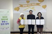 브릿지저널 정보영 기자 | 아산시 영인면 행복키움추진단은 지난 22일 우신설비㈜와 취약계층 지원을 위한 후원 협약을 체결하고 후원금 전달식을 진행했다. 이날 협약과 함께 우신설비㈜는 후원금 50만 원을 전달했으며, 해당 후원금은 영인면 행복키움추진단의 복지사업과 관내 취약계층 지원을 위해 사용될 예정이다. 우재원 대표는 “이번 협약을 통해 지역의 어려운 이웃을 돕는 데 함께할 수 있어 뜻깊게 생각한다”며 “앞으로도 지역사회와 상생하는 나눔 활동을 지속해 나가겠다”고 말했다. 김정자 행복키움추진단장은 “나눔문화 확산에 동참해 주신 우신설비㈜에 감사드린다”며 “전달받은 후원금은 도움이 필요한 주민을 위해 소중히 사용하겠다”고 밝혔다. 김은경 영인면장은 “이번 후원 협약이 지역 복지 증진에 의미 있는 계기가 되길 바란다”며 “따뜻한 나눔을 실천해 주신 우신설비㈜에 감사드린다”고 말했다. 한편, 우신설비㈜는 2023년부터 매년 영인면 행복키움추진단에 후원금을 기탁하며 지역 복지 향상을 위한 나눔 활동을 꾸준히 이어오고 있다.