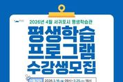 브릿지저널 정보영 기자 | 서귀포시는 시민의 다양한 배움의 기회를 제공하기 위해 2026년 4월 개강 서귀포시 평생학습관 프로그램 수강생을 모집한다고 밝혔다. 이번 교육과정은 직업능력, 인문교양, 문화예술 등 3개 분야, 15개 강좌, 총 235명의 수강생을 모집하여 운영할 예정이다. 수강신청은 16일 오전 9시부터 25일 오후 6시까지 서귀포시 평생학습관 홈페이지에서 온라인을 통한 선착순 접수로 진행되며, 정원 미달 강좌는 26일부터 27일까지 이틀간 추가접수를 받는다. 모집 대상은 만 19세 이상 서귀포시민이며, 서귀포시민을 우선으로 선발하고 타지역 거주자는 후순위로 선정된다. 특히, 지역청년의 성장을 지원하기 위해 직업능력 분야 2개 과정은 청년층(만19세~39세)를 우선 선발(정원의 30%)하여 운영한다. 서귀포시 관계자는 “평생학습관에서는 자격증 취득과정 운영뿐만 아니라, 직장인과 시민들의 학습 접근성을 높이기 위해 주말 및 야간 프로그램을 확대하여 시민들의 평생학습 참여 기회를 넓히고자 노력하고 있다”라고 말했다.