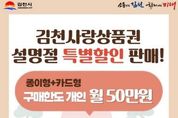 브릿지저널 정보영 기자 | 김천시는 오는 설 명절을 앞두고 2월 한달간 김천사랑상품권을 15% 특별 할인 판매하여 지역 소비 활성화에 나선다. 시는 이번 설 명절 특별 할인 판매로 침체된 골목상권에 활력을 불어넣고, 지역경제 회복에도 긍정적인 영향을 미칠 것으로 기대하고 있다. 지역 내 소비 촉진 및 민생경제 활성화를 위해 개인이 카드 충전 또는 상품권을 구매할 경우, 종이형 상품권 구매한도 30만 원을 포함해 월 최대 50만 원까지 할인혜택을 제공한다. 개인 보유 한도는 최대 100만 원이며, 연매출 30억 원을 초과하는 가맹점에서는 기존과 같이 결제가 제한될 예정이다. 이번 설 명절 특별 할인 판매로 선물·장보기 등 가계 지출이 늘어나는 시기에 실질적인 가계 부담을 덜어주는 동시에 지역 내 소비 확대로 이어져 지역 상권 전반에 크게 도움이 될 전망이다. 김천시 관계자는 “이번 김천사랑상품권 특별 할인 판매로 설 명절 소비를 촉진하는 마중물 역할을 할 것으로 기대하고 있다. 경기 침체로 어려운 상황에 놓인 지역 소상공인과 시민들을 위해 앞으로도 다양한 민생경제 활성화 방안을 지속적으로 추진해 나가