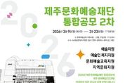 브릿지저널 정보영 기자 | 제주문화예술재단은 도내 예술인의 창작 활동 지원과 지속가능한 문화예술 생태계 조성을 위해 ‘2026년 지원사업 통합공모 2차’를 3월 23일까지 진행한다. 이번 통합공모는 ▲예술창작지원 ▲K-Art 청년예술인 지원 ▲예술인복지지원 ▲문화예술교육지원 ▲지역문화지원 등 5개 부문 18개 유형으로 진행된다. 특히 이번 공모에서는 변화하는 창작 환경에 발맞춰 ‘인공지능(AI) 창작 실험실’유형을 신설하는 등 예술인의 창작 실험과 기술·예술 융합 활동을 지원한다. 재단은 통합공모에 대한 이해를 돕기 위해 도내 예술인을 대상으로 사업설명회를 개최한다. 오는 12일과 13일에 서귀포삼다종합사회복지관과 제주아트플랫폼에서 각각 진행되며, 사업별 공모 주요 내용을 안내할 예정이다. 신청 대상은 제주도에 주소를 둔 예술인과 예술단체다. 다만 사업별 신청 자격과 세부 기준이 달라 공고문을 반드시 확인해야 한다. 자세한 공모내용과 세부일정은 재단 누리집에서 확인 가능하다. 지원 신청은 국가문화예술지원시스템(NCAS)을 통해 접수하며, 선정 결과는 심의를 거쳐 4월 중 재단 누리집에 공고할 예정