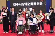 브릿지저널 김경미 기자 | 진주시장애인체육회는 지난 12일 진주시장애인문화체육센터에서 ‘2025 진주시장애인체육상 시상식’을 개최했다. 이번 시상식은 제45회 전국장애인체육대회를 비롯한 각종 대회에서 우수한 성적을 거둔 선수들을 축하하고, 2025년 한 해 동안 진주시 장애인체육 발전에 기여한 선수와 지도자, 관계자, 봉사자들의 노고를 격려하기 위해 마련됐다. 이날 행사는 장애인체육 발전에 공헌한 관계자에게 감사패와 공로패를 전달하며 훈훈한 분위기 속에 시작됐다. 이어 ▲진주시장상 ▲국회의원상 ▲진주시의회 의장상 ▲진주시장애인체육회장상 등 유공자 26명에게 표창이 수여됐다. 또한 제45회 전국장애인체육대회에서 메달을 획득한 선수 13명 전원에게 우수선수상이 수여됐으며, 이 가운데 역도 종목에서 동메달을 차지한 김진윤 선수는 신인선수상을 수상했다. 김 선수는 올해 각종 대회에서 신인답지 않은 뛰어난 기량을 선보이며 수상자로 선정됐다. 이와 함께 각종 장애학생체육대회에서 우수한 성적을 거둔 학생들에게 ‘우수 꿈나무 선수상’과 체육장학생들에게 장학금이 전달돼 미래 장애인체육의 주역들을 격려했다. &nbs