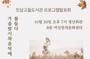 브릿지저널 정보영 기자 | 금산인삼고을도서관은 프로그램 수강생들의 학습 성과물에 대한 성취감 고취와 지역 주민 문화 향유 기회 제공을 위해 오는 30일 금산읍 청산회관에서 ‘가을밤, 시와 음악에 물들다’ 행사를 개최한다. 이날 도서관 독서문화프로그램 ‘시와 함께 소리 찾기’ 수강생 시 낭송 공연 및 문화예술동아리 지원사업으로 운영 중인 금산만돌린챔버 수강생 만돌린 공연 등이 개최된다. 또한, 박인숙 인문학 강사의 ‘시를 노래하다’ 특강이 펼쳐진다. 금산인삼고을도서관 ‘가을밤, 시와 음악에 물들다’ 행사에 관한 자세한 내용은 금산다락원 도서관팀에 문의하면 된다. 도서관 관계자는 “2021년 이후 만 4년 만에 개최되는 발표회를 열게 됐다”며 “그동안 프로그램 참여를 통해 기량을 익힌 수강생들의 성과를 보여주는 자리가 될 것”이라고 말했다.