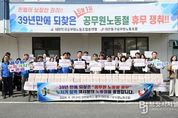브릿지저널 정보영 기자 | 대전중구공무원노동조합은 29일 오전 10시 조합 사무실 앞에서 중구청장 및 노동조합 관계자가 함께 ‘39년 만에 되찾은 공무원 노동절 휴무 기념행사’를 개최하고, 63년 만에 노동절 명칭 복원과 120만 공무원, 교사 차별 해소를 경축하는 자리를 가졌다고 밝혔다. 이번 행사는 2026년부터 공무원과 교사에게도 5월 1일 노동절 휴무가 전면 적용된 것을 경축하고, 그 역사적 의미를 전 조합원들과 함께 나누기 위해 마련됐다. 이는 1987년 민주화 운동 이후 공무원의 노동권 보장 요구가 본격화된 지 약 39년 만에 이뤄낸 성과다. 그동안 노동절은 근로기준법상 유급휴일로 규정되어 공무원, 교사, 특수고용직 등은 적용 대상에서 제외되어 왔으나, 이번 관련 법 개정으로 약 120만 명에 달하는 이들이 겪어온 오랜 제도적 차별이 해소됐으며, 공무원 역시 보편적 노동자로서의 지위를 인정받게 됐다. 중공노는 이날 기념식에서 전 조합원에게 ‘39년 만에 되찾은 공무원노동절 휴무 기념 수건’을 제공하며 역사적인 첫 공무원 노동절 휴무를 함께 축하했다. 이정만 위원장은 이번 노동