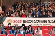 브릿지저널 김경미 기자 | 안산시는 지난 17일 안산문화예술의전당 달맞이홀에서 개최된 바르게살기운동 안산시협의회(회장 이완균) ‘바르게살기운동 회원대회’서 지역사회 발전을 위해 헌신한 회원들의 노고를 격려하는 시간을 가졌다고 18일 밝혔다. 이번 행사는 올해 바르게살기운동의 성과를 돌아보고, 이웃사랑 실천과 사회봉사활동으로 지역사회 발전에 기여한 회원들을 격려하기 위해 마련됐다. 행사는 이민근 안산시장을 비롯해 이완균 바르게살기운동 안산시협의회장, 김영선 바르게살기운동 경기도협의회장 등 회원 및 관계자 500여 명이 참석한 가운데 진행됐다. 행사에서는 ‘진실·질서·화합’이라는 바르게살기운동의 기본이념을 바탕으로 한 해 동안 모범적으로 활동한 회원 50여 명에게 행정안전부장관 표창, 안산시장 표창 등이 수여됐다. 이완균 안산시협의회장은 “내년에도 ‘진실·질서·화합’의 정신을 바탕으로 지역사회에 기여하는 바르게살기운동 안산시협의회가 되도록 더욱 노력하겠다”고 말했다. 이민근 안산시장은 “올 한 해 안산의 발전과 시민을 위한 봉사에 앞장서 주신 바르게살기운동 회원 여러분의 헌신에 깊이 감사드린다”라며 “